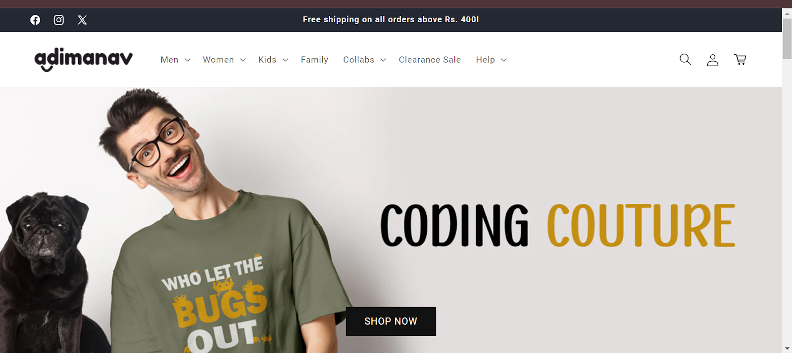 The Adimanav label's direct-to-consumer site features stylish collections of spacious t-shirts in India