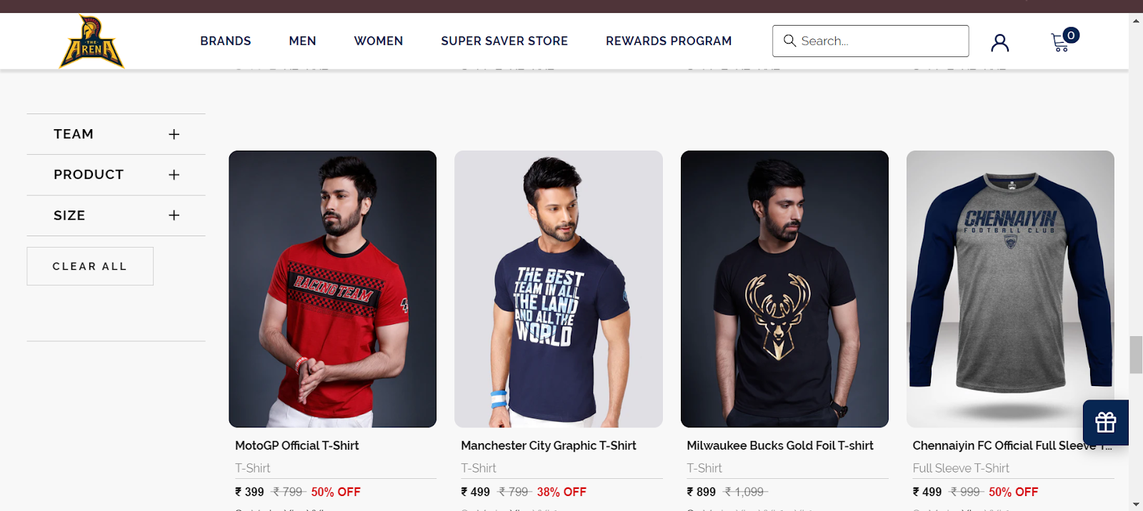 The D2C platform of The Arena brand showcases fashionable collections of graphic t-shirts specifically designed for the Indian market
