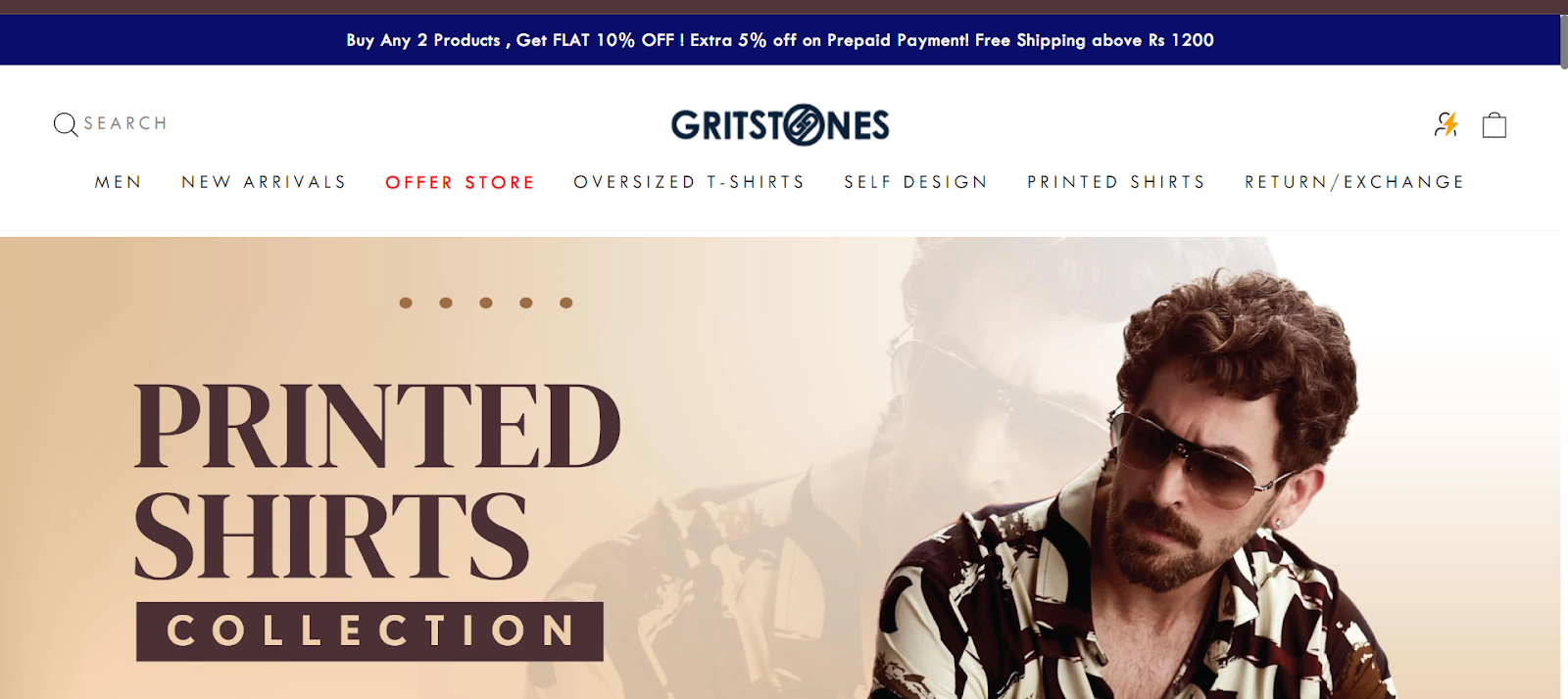The D2C website of Gristones brand presents stylish collections of printed oversized t-shirts tailored for the Indian market
