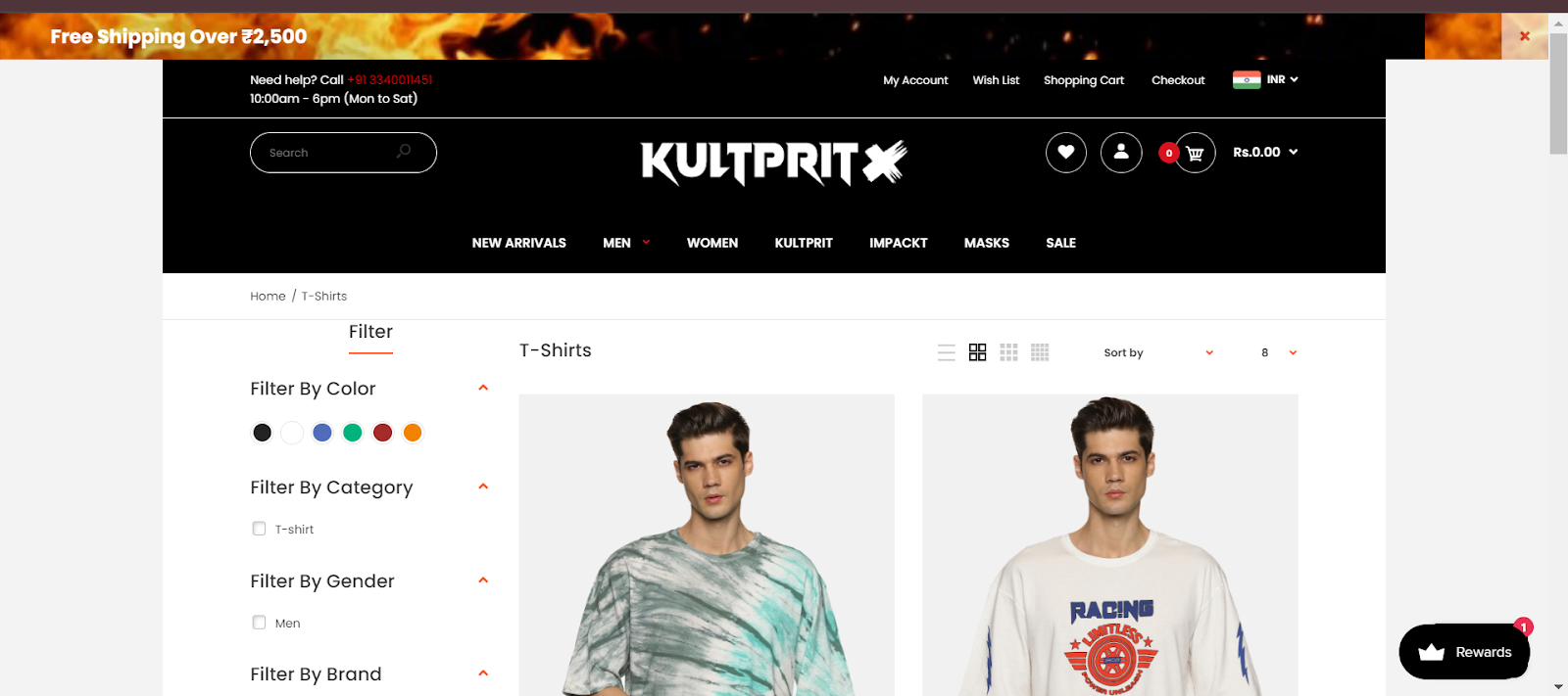 The Kultprit brand's website sells fashionable oversized t-shirts in India