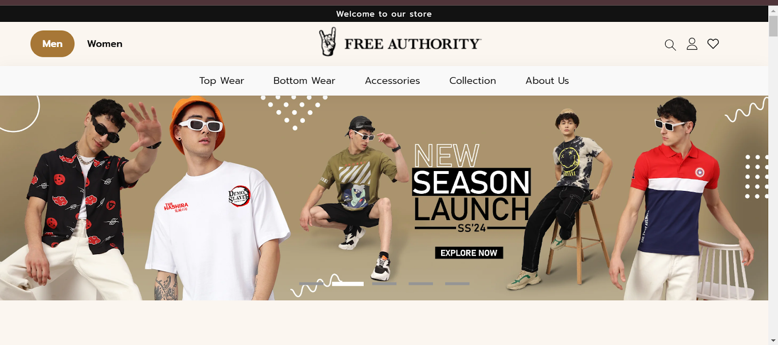 The D2C website of the Free Authority brand exhibits stylish collections of oversized t-shirts in India