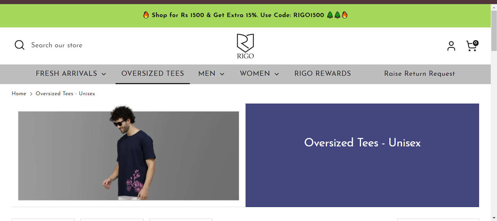 The D2C website of Rigo brand features stylish collections of oversized t-shirts in India
