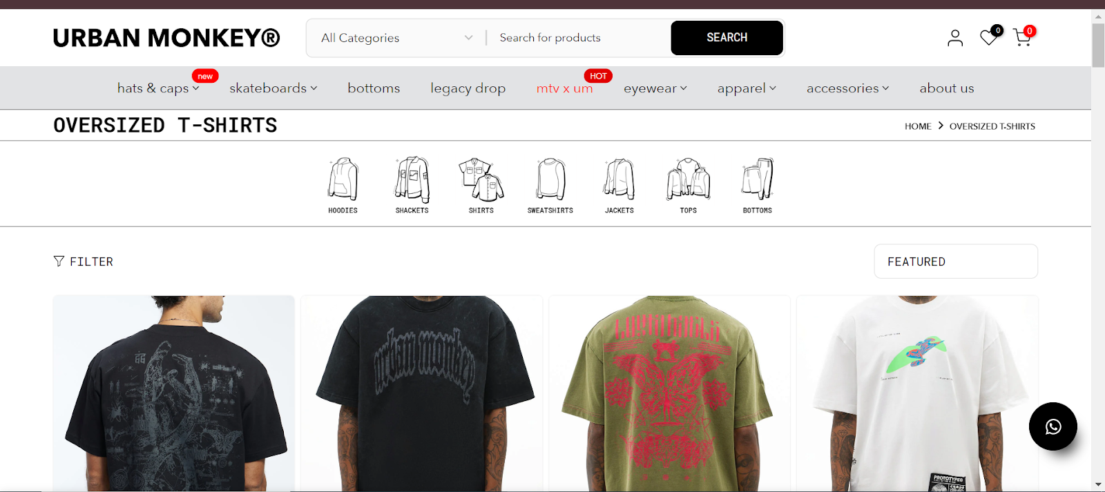 The Urban Monkey label's direct-to-consumer site features stylish collections of spacious t-shirts in India