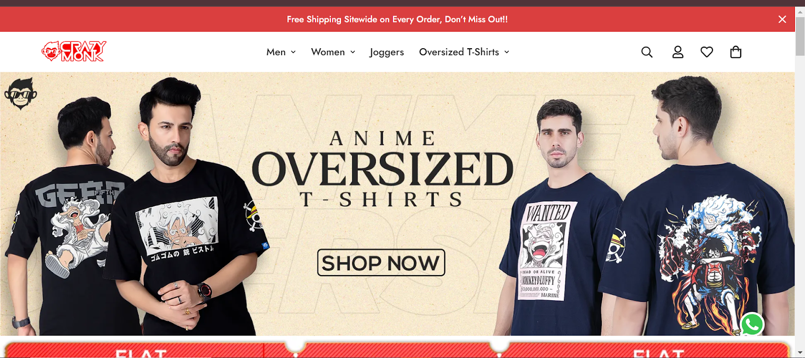 Crazy Monk brand’s direct-to-consumer website features stylish oversized t-shirt collections available in India