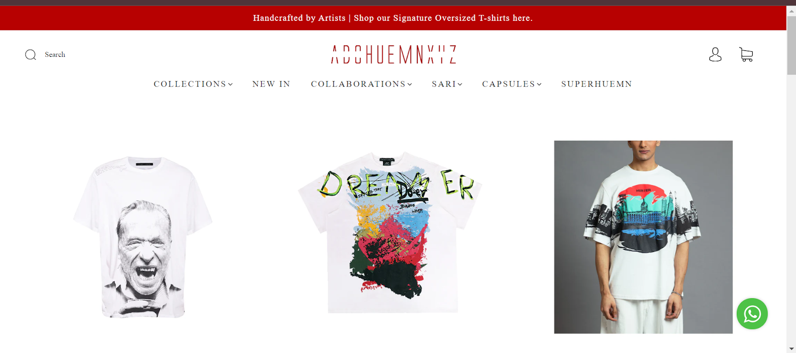 Huemn brand's direct-to-consumer website features stylish collections of oversized t-shirts in India