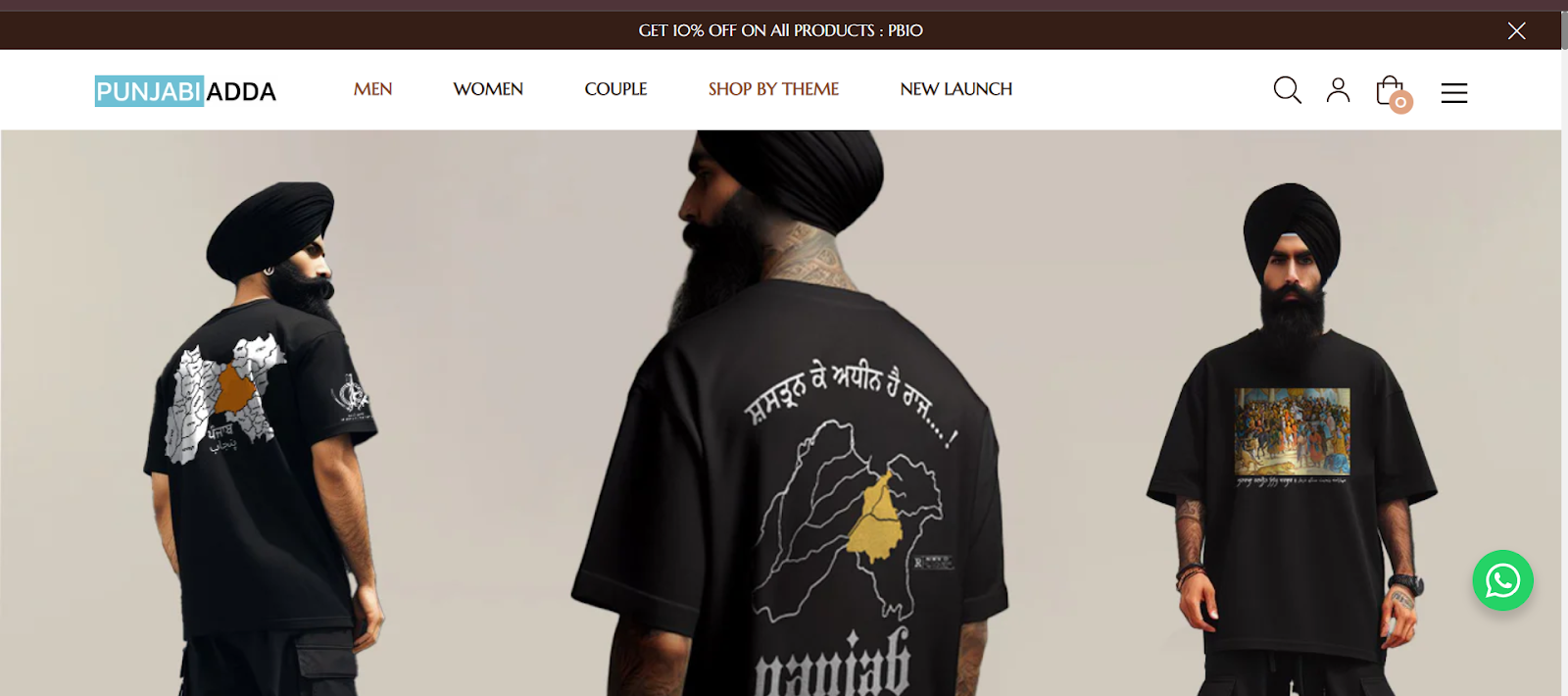 The Punjabi Adda brand's website sells fashionable oversized t-shirts in India.