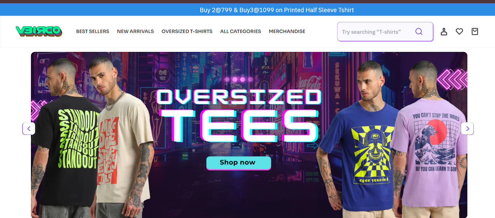 Veirdo brand’s direct-to-consumer website features stylish oversized t-shirt collections available in India